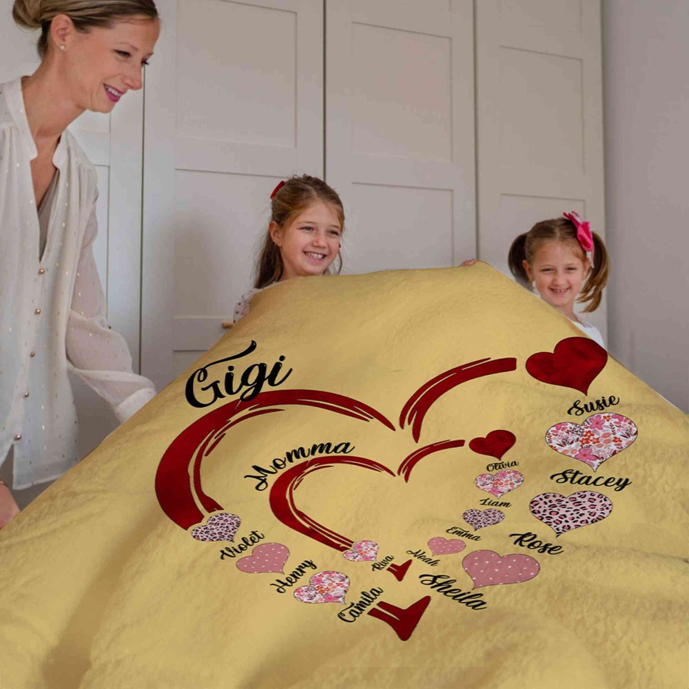 This blanket features a unique heart name design, allowing you to customize it with the names or titles of grandma, mom, or the children in your family. Such personalization fills each blanket with warmth and emotion, making it a treasured keepsake that lets every family member feel special care and love.