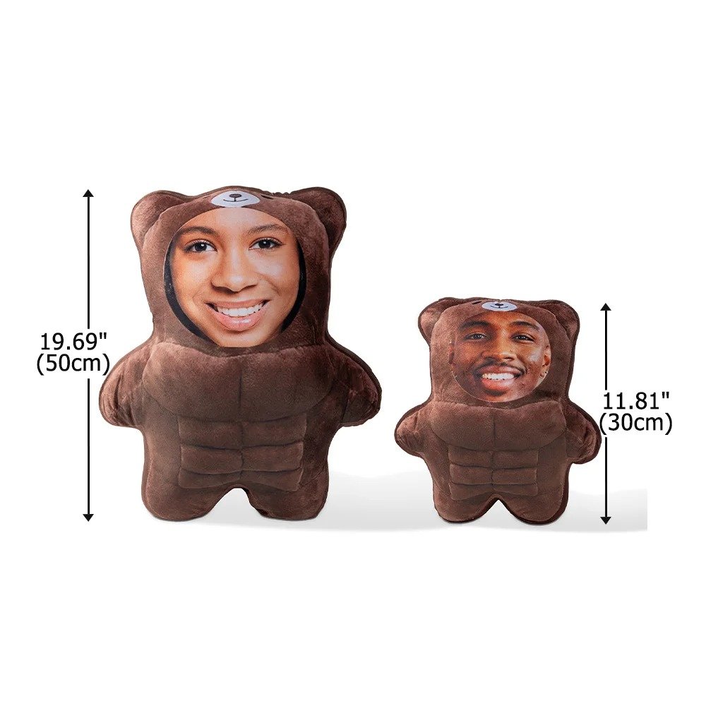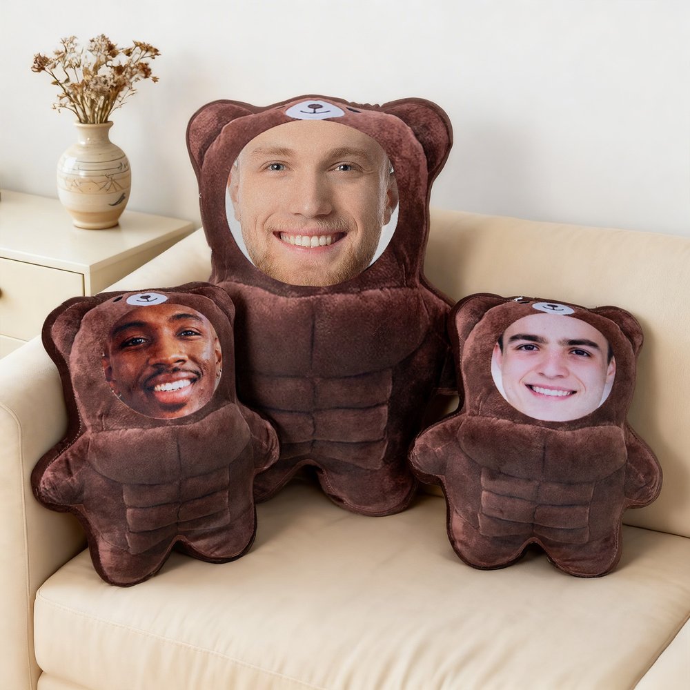 This muscle bear plush pillow features a novel and unique design, combining a cute bear shape with defined muscle lines for a humorous and fun visual effect. What makes it extra special is that you can upload a photo to customize the face on the muscle bear, turning this pillow into a one-of-a-kind item full of personality.