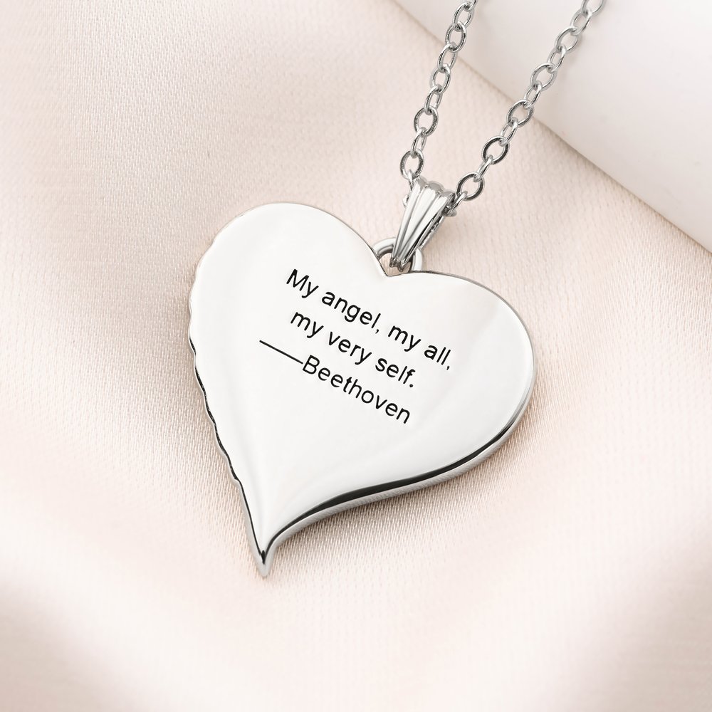 This necklace offers deeply personal customization that turns cherished memories into wearable art. You can upload a favorite photo to be embedded in the heart pendant, which remains hidden until activated by body heat, revealing the image only when worn close to the skin. The back of the pendant can be engraved with custom text, such as a meaningful quote, name, or date, adding an extra layer of sentiment.