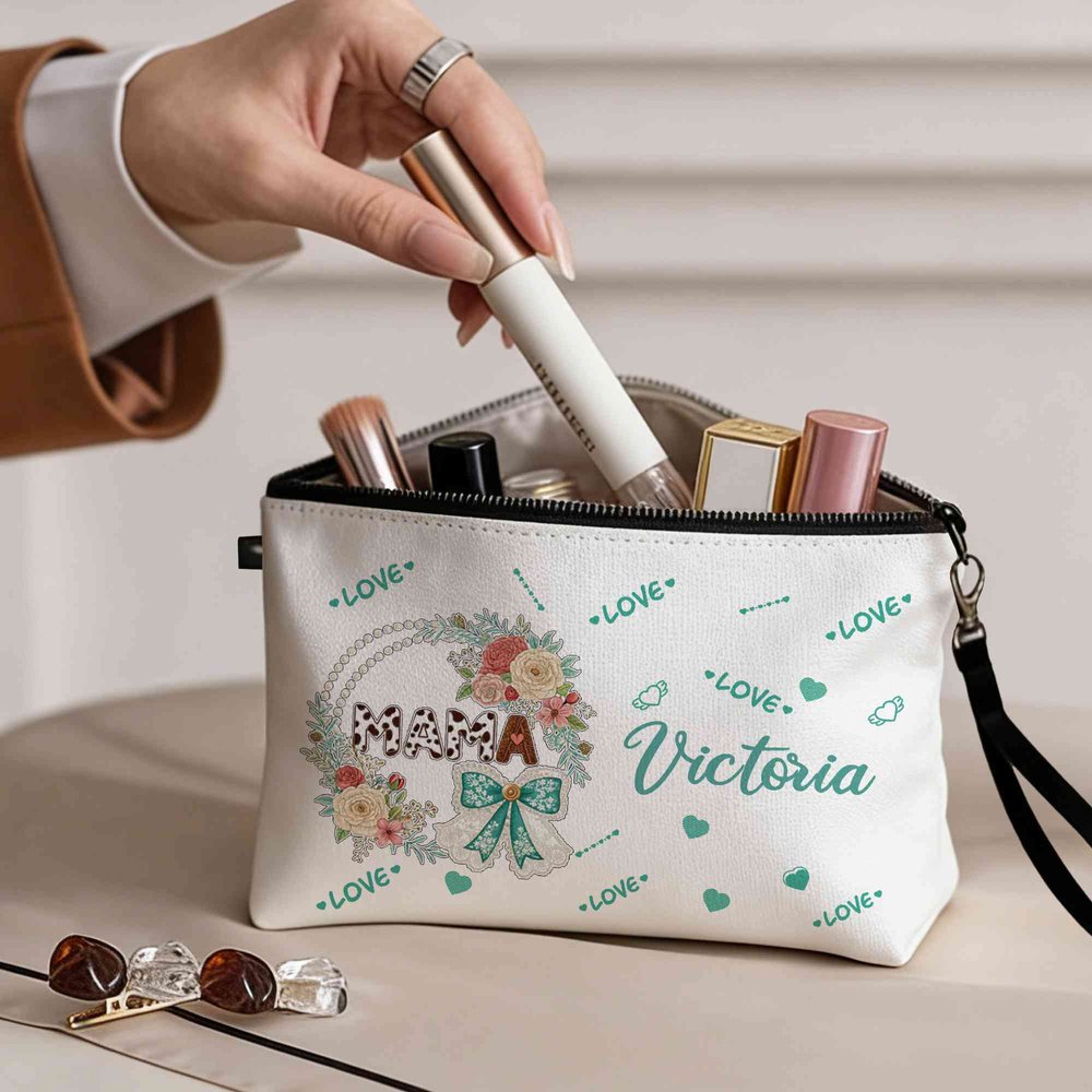 This Personalized Mama Design Flower Bow Tote Bag & Makeup Bag Set features with a custom name, paired with the elegant floral "Mama" design, transforming a simple accessory set into a one-of-a-kind tribute to her role as a mom or grandma, blending feminine style with practical functionality to create the perfect gift set for moms, grandmas, and any special woman in your life, ideal for daily use, travel, and gifting.