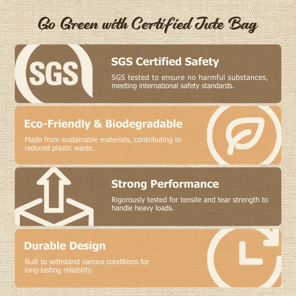 Crafted from premium jute material, this bag boasts exceptional durability and load-bearing capacity, effortlessly accommodating daily essentials. The tightly woven body features uniform stitching and meticulous attention to every detail. The sturdy handles are ergonomically designed for comfortable carrying, never straining your hands even after prolonged use.